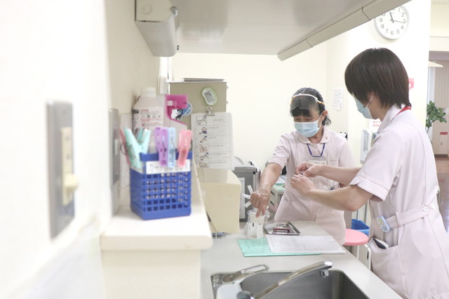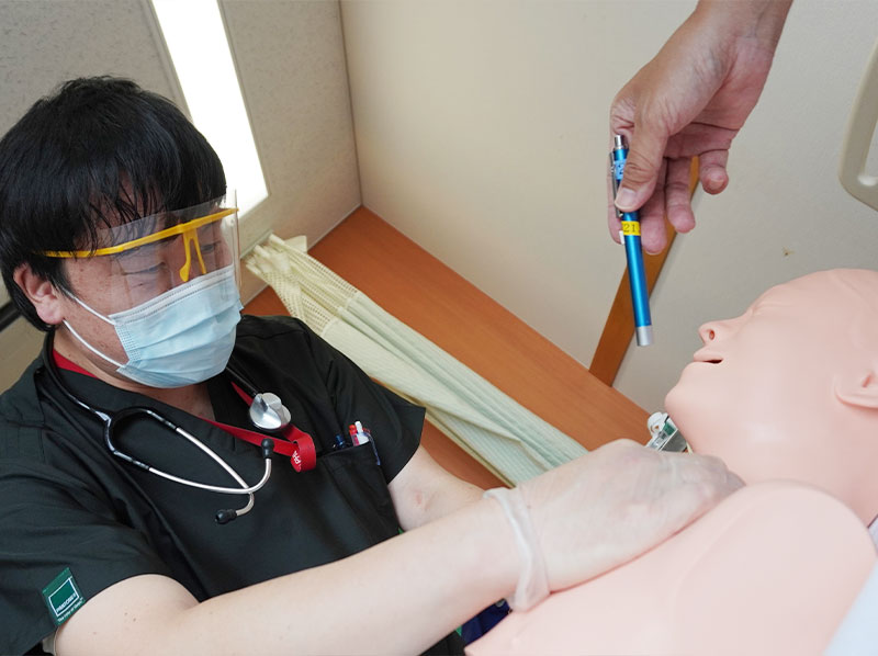地震や豪雨災害などの被災地で医療救護活動を行う「医療救護班」は、日本赤十字社徳島県支部に所属する医師や看護師、薬剤師、主事等で構成されており、当施設も8名の職員が救護班員として登録されています。