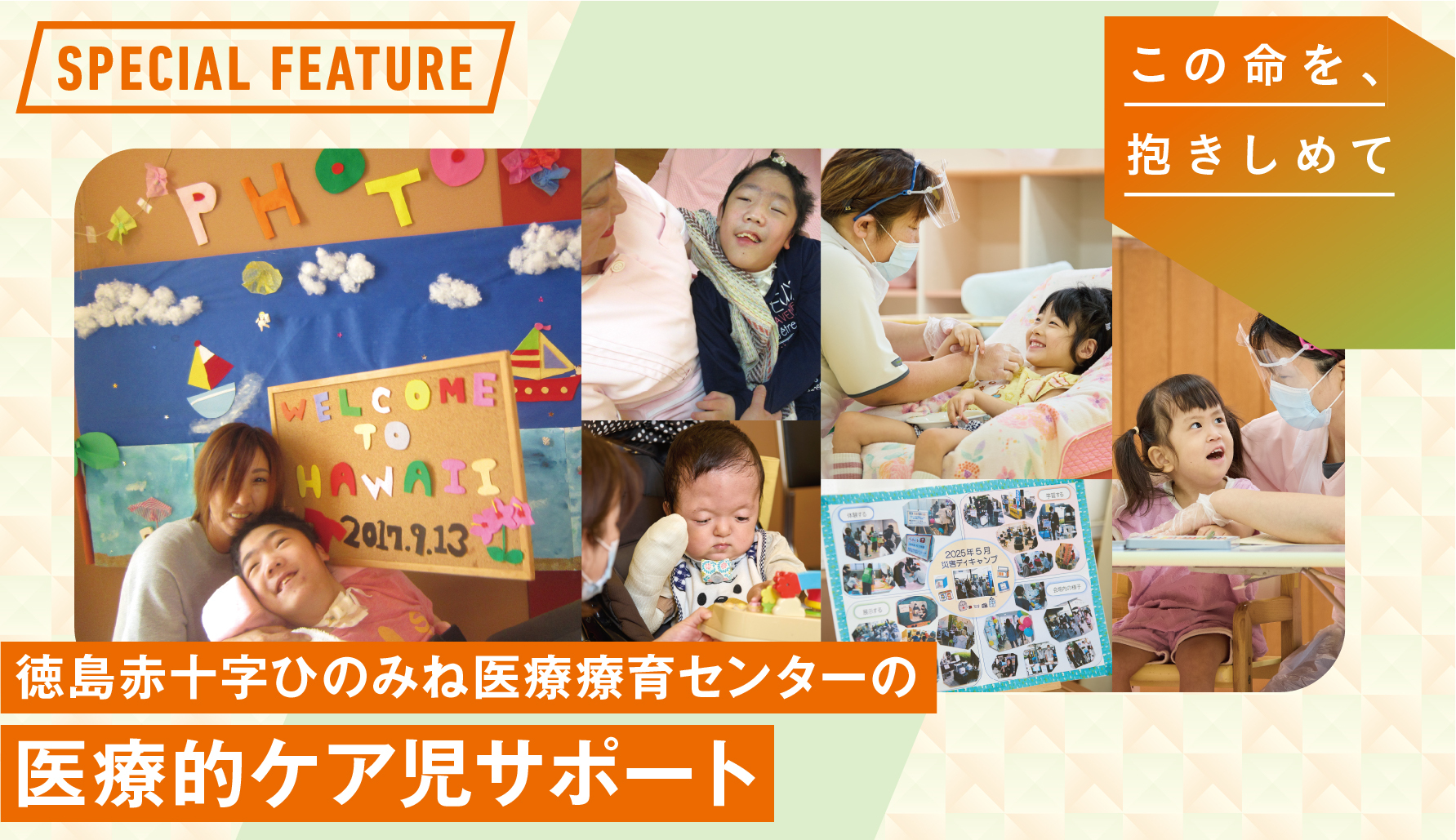 私たち徳島赤十字ひのみね医療療育センターは、医療と福祉が一体となった体制で、障がいのある方やそのご家族に寄り添い、安心と希望を届けるケアを心掛けています。